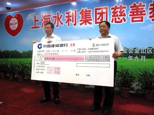 上海市慈善基金会接受上海水利工程集团有限公司捐赠现金支票