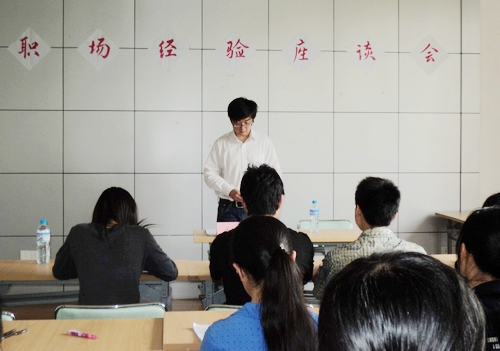 5月12日下午1:30,由华东理工大学慈善爱心屋主办的职场经验座谈会在大学生活动中心103拉开帷幕。明星笔芯有限股份公司姜斌先生进行了一场生动的职场演说,勤工助学指导中心指导老师李波老师全程陪同。