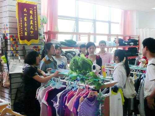 海事大学义工队代表们正在参观华理慈善爱心屋