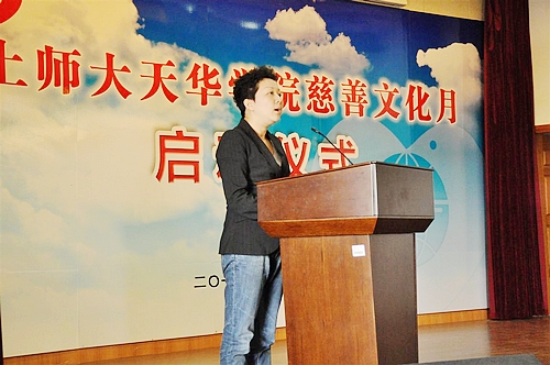 2011年4月12日,上海师范大学天华学院慈善文化月启动仪式在天华学院报告厅举行。学院党委副书记邹荣庚、龚春蕾、党委组织部部长顾绍元、党委宣传部部长陈再阳、工会主席曹卫、团委书记刘天翔以及各系党支部书记、团总支书记出席了本次启动仪式。