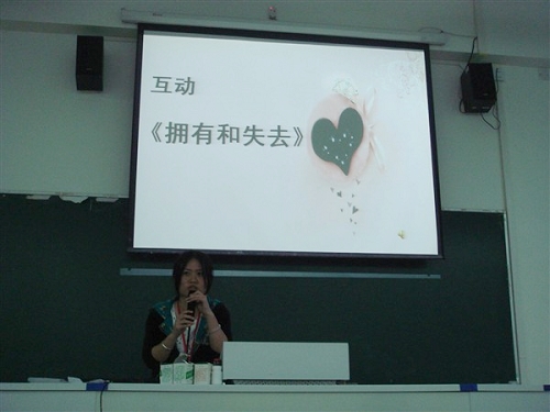 整场活动以面对面交流,辅以幻灯片讲解说明的形式进行,主要针对一些案例进行分析。目的是为了通过这些案例分析使同学们意识到作为当代大学生的我们不应该只局限在自己的世界里,应该多与身边的朋友、同学、家人沟通,在他们需要帮助的时候及时的伸出援手。对于作为志愿者的我们来说,更应该在帮助社会弱势群体的同时,多关心我们身边的人。