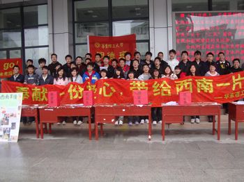 4月8、9日中午,华东理工大学“明德班”全体同学在奉贤校区食堂门口为西南旱灾区举行了爱心募捐活动。