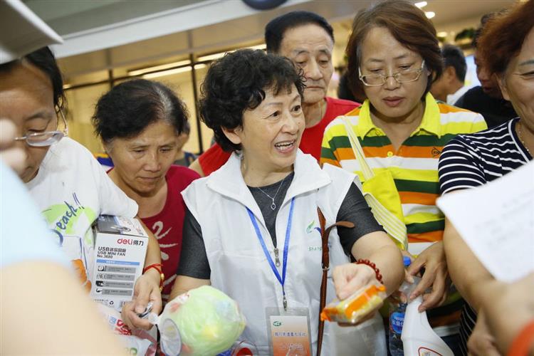 当天上午9点半,义卖活动掀开帷幕。本次义卖的物品,在国和1000一楼大厅依次排开,摆满20辆花车。除了居民区和街道职能部门捐献的9辆花车外,其余全为辖区36家企事业联盟单位捐赠,各类赠品价值7万余元。活动当天,党建服务中心和辖区单位、学校联合组织了100多人的公益志愿者队伍,他们7点刚过便来到现场,虽忙碌尤感欣慰。仅一个多时辰,21个微心愿早已悉数被领,书写了一曲“小小心愿、无边大爱”的人间赞歌!整个活动精彩纷呈,高潮迭起。10点整,作为街道党建联盟单位的上海轻音乐团,特意一大早从徐家汇赶来,为人们演奏或演唱了一曲曲耳熟能详、悦耳动听的乐曲。丰富多彩的文艺节目,赢得社区居民啧啧称赞,营造了温馨的“蓝天之爱”。与此同时,参加定向赛的队员们先后抵达国和1000,拍照留念以示庆贺。整场活动洋溢着欢声笑语,持续到11点多才宣告圆满结束。