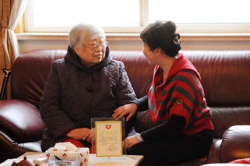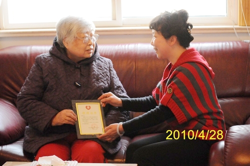 市慈善基金会虹口区分会工作人员向关少娴老人颁发捐赠证书