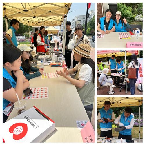 上海纪年律师事务所在现场开展法律公益咨询服务;“广兵美好生活”公益团队为路过的市民提供修鞋服务。