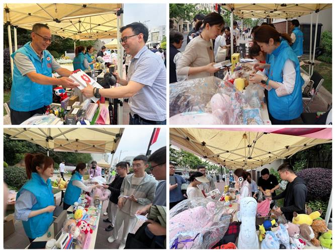 活动现场,2021年度全国最美志愿者、“全国劳动模范”、上海童涵春堂药业股份有限公司党总支书记,童涵春堂药业股份有限公司副总经理陈黎静女士;全国劳模、上海市优秀共产党员、全国五一劳动奖章获得者,上海南房(集团)有限公司物业技术总监蒋华云先生,来到爱心窗口担任志愿者,参与爱心义卖,并接待前来捐赠的爱心市民。