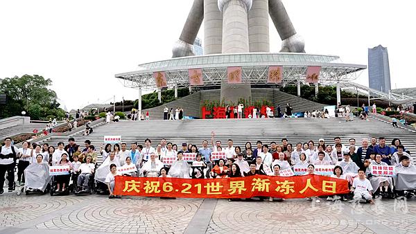 上海慈善网讯 6月21日,夏至,由常青关爱基金发起,上海市精神文明办、上海市慈善基金会、上海市残疾人福利基金会、阎宝航社会公益基金会等几十家单位和企业联合举办的关爱渐冻人活动再次如约举行。今年的主题为“科技赋能,用爱解冻”,来自社会各界组织和个人的爱心再次点亮东方明珠,所有人都因为爱聚到一起,再一次谱写出解冻生命的赞歌。