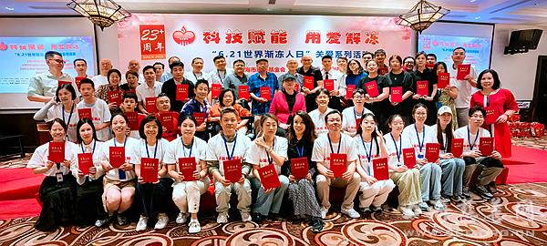 下午13时,身着盛装的渐冻症病友被缓缓推上红毯,每个人脸上都绽放笑容、自信满满。“621”是他们每年最期盼的节日,而红毯仪式更是他们最开心的时刻。与往年不同的是,今年的主办方准备的机器人、外骨骼等智能设备,让他们眼里有光,心里充满希望。发起人朱常青最后一个被推上舞台,签名、病友合影。红毯仪式圆满结束。渐冻症病友佳佳演唱歌曲《至少还有你》,唱出了心声:感恩每一位爱心人士,拥抱未来。