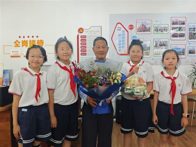 随后在居委干部的指引下,小朋友与部分老人一起穿上志愿者马甲,走出党群服务站,拿起火钳和垃圾袋,清扫街面垃圾,挥洒自己的汗水的同时也为街区做出自己力所能及的贡献,大家在劳动中获得快乐。活动最后,雏鹰小队代表向社区“光荣在党五十年”的老党员献上鲜花和夏季慰问品,表达对老同志的关心关怀,同时这也是少先队员向中国共产党党员的一份庄严致敬和崇高敬仰。