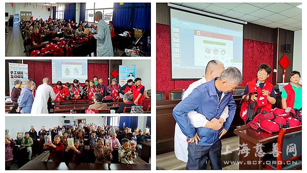 在青浦区,当天的“健康科普进社区·为老服务零距离”活动走进徐泾镇二联村,主讲的徐医生为现场52位村民讲解了海姆立克急救法。
