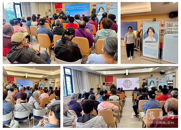 在虹口区曲阳路街道第一市民驿站内举办的“健康科普进社区 为老服务零距离”科普系列讲座上,来自岳阳医院内科副主任医师严理为社区60位老年人讲解金秋时节的养生知识。