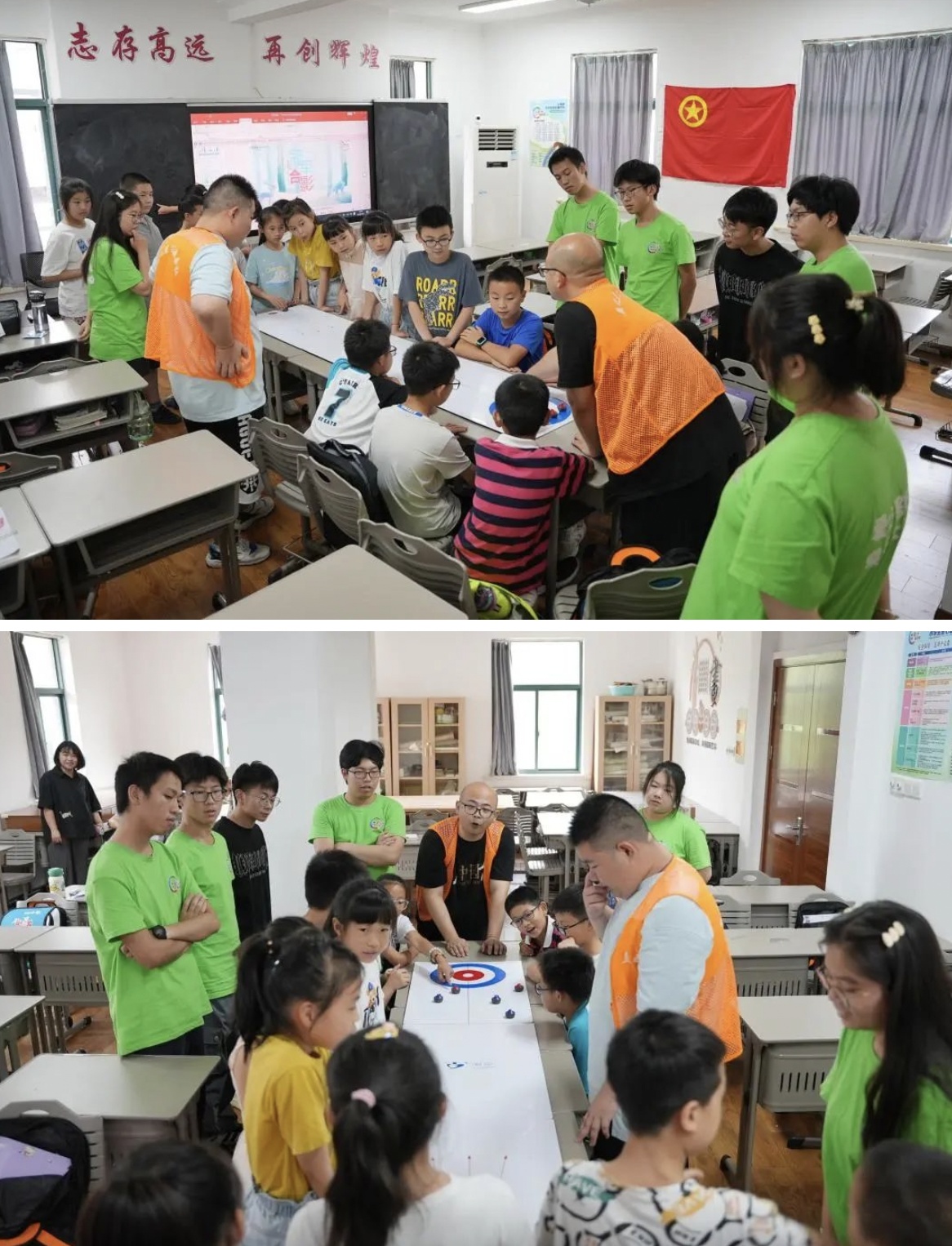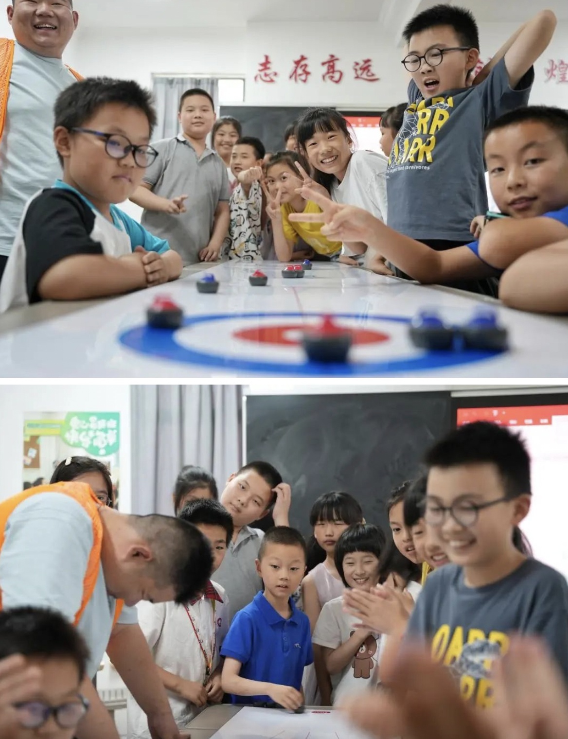 “原版的冰壶太重,小朋友的推击力度不是很大,运动有一定难度。我们改良了以后不一样了,这种小型的冰壶更能让小朋友接受,我看大家都很喜欢。”毛金权是奉贤区益之星公益服务社项目社工,平时一直在街道为老人、小孩提供公益服务,他也是第一次参与爱心暑托班,看到孩子们对自己的授课那么喜爱,他也觉得很高兴,表示下一阶段课程可以继续再来授课。