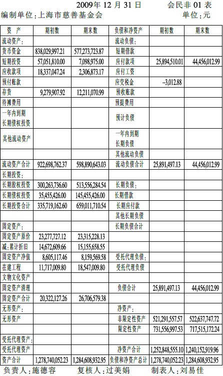 2009年度上海市慈善基金会资产负债表