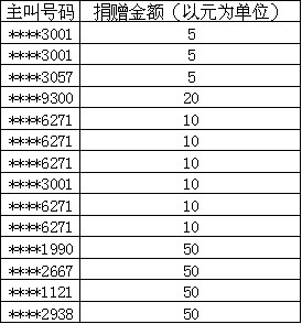 市会募捐部接收的2010年8月份电话捐款