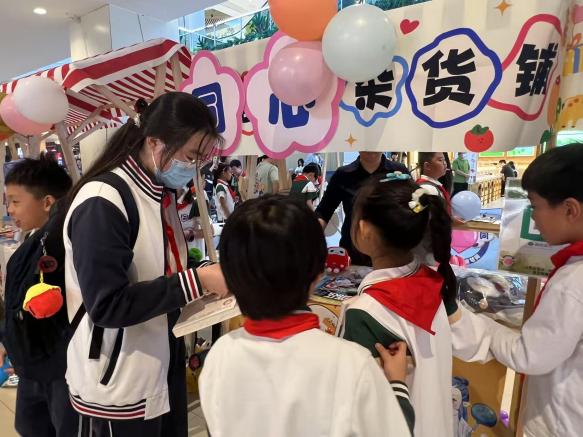 4月25日下午,上海悠方购物中心B1中庭被一片充满活力的 “橙色爱心” 点亮。在这里,三(3)中队举办了以 “少年有志?爱心同行” 为主题的公益义卖活动。