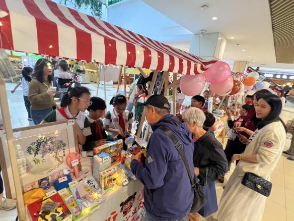 商场花车经精心布置,各摊位特色鲜明。“旧书漂流馆” 的经典读物传递阅读乐趣;“缤纷文具屋” 货品齐全,吸引众多小学生;“文创妙想区” 的创意明信片、手账本等文创产品设计独特;“玩具嘉年华” 让模型、毛绒玩具等 “二手宝贝” 重焕生机;“爱心画廊” 展示售卖孩子们的DIY画作,充满童趣;“手工匠心铺” 的手工串珠饰品、泥塑等手工艺品,尽显同学们的巧思。