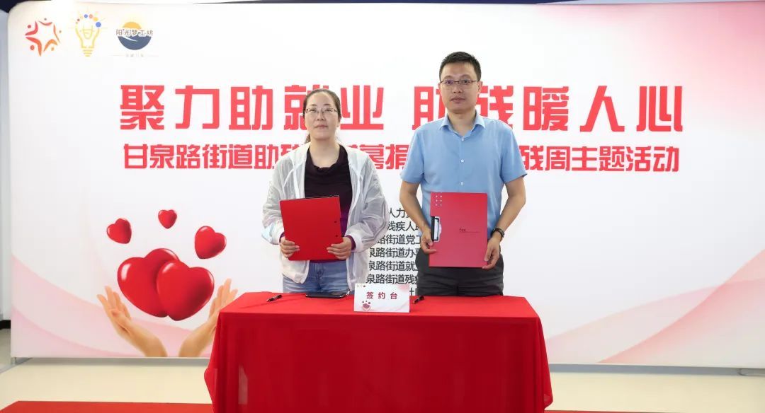 活动中,甘泉街道企业代表和甘霖初级职业技术学校共同签署合作协议,通过建立政府、企业与残障就业者三方可持续的融合就业模式,强化校企协同育人,加强岗位开发、职业训练、融合培训等,为企业带入多元化用人的新视角新理念,为残障人士融入社会提供就业机会,共同推进残障人群就业事业的发展。“阳光之家”负责人表示:“举办此次活动是想要促进社会各界对扶残助残的认识,希望能激发更多人对于公益慈善事业的关注。同时十分感谢参与此次募捐活动的爱心企业,也欢迎更多关爱残疾人群体、关心残障人士就业的爱心人士、爱心企业能够参与甘泉的助残就业项目。”