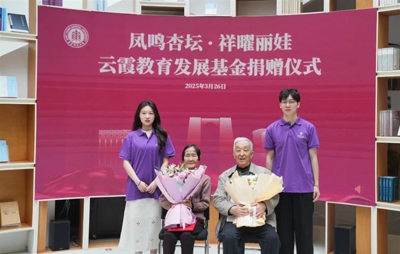 3月26日,九旬伉俪,华东师大原党委书记严凤霞与先生唐云祥倾囊捐赠,设立“云霞教育发展基金”。“云霞”之名,取自二老的姓名,寓意着绚烂多彩、光明璀璨的未来。
