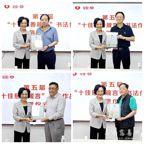 上海慈善网 战“疫”,我们携手并进;慈善,我们举世同行……一句句温暖的慈善箴言在沪上书法家的笔下彰显出文化艺术的力量。5月31日上午,第五届“十佳慈善箴言”书法作品捐赠仪式举行,上海市书法家协会向上海市慈善基金会共捐赠了10幅书法作品。上海市慈善基金会理事长钟燕群代表市会接受了捐赠,并向爱心书法家颁发了捐赠证书。