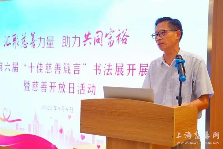 上海市慈善基金会松江区代表处副会长兼秘书长景玉龙在致辞中表示,松江是上海之根,有着“书香之域、书画之城、文博之府、影视之都”的深厚底蕴。此次举行的第六届“十佳慈善箴言”书法展,是书法家投身松江文化事业的又一次生动实践,也是助力慈善事业发展的有益探索,必将为人文松江、大爱松江建设增添蓬勃生机。他希望书法家一如既往地支持松江慈善事业的发展,让慈善文化与书法艺术有更多的交融,让跨界慈善迸发时代光芒。