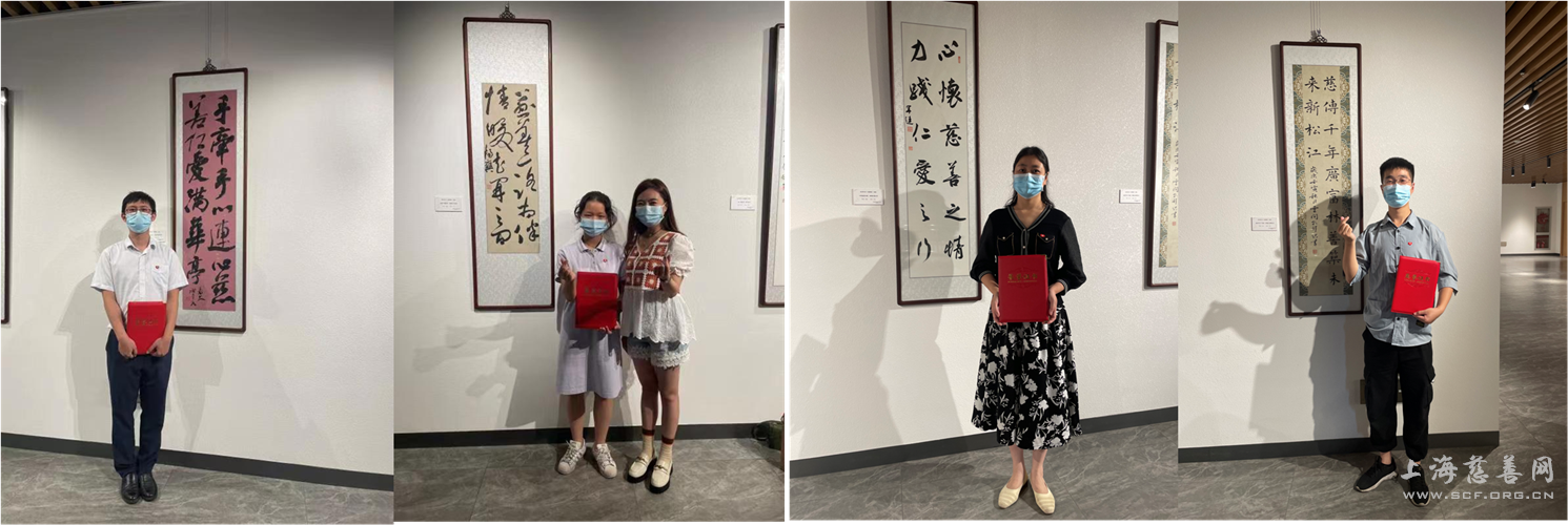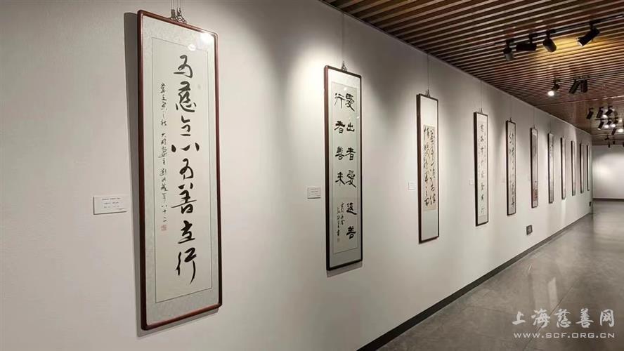 现场,区委宣传部副部长、区文明办主任沈茜和景玉龙一同为书法展揭牌。区民政局副局长庄爱华,刘兆麟、谢贵民、卢俊山、杨爽等书法家应邀出席。松江区第六届“十佳慈善箴言”获奖代表,爱心人士、社会组织和志愿者代表等参加活动。