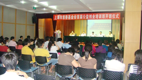 为帮助有志创业的青年走好创业型就业之路,为促进经济发展和维护社会稳定做出贡献,2009年9月17日下午,假座虹口区提篮桥社区文化中心,中心联合虹口区团区委、虹口区青联、提篮桥社区(街道)团工委举行了上海市慈善基金会首届公益创业班开班仪式,虹口区团区委书记刘佳,上海市慈善教育培训中心副主任徐本亮,上海市慈善基金会公益发展基金主任高咏刚、秘书长王欣出席了开班仪式。