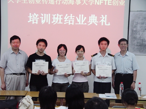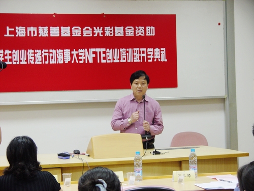 2007年5月22日下午1:30,由上海市慈善基金会光彩基金资助、上海市慈善教育培训中心组织实施的大学生创业传递行动上海海事大学NFTE创业培训班开学典礼在海事大学管理楼102教室隆重举行,获得上海市慈善基金会光彩基金资助、来自西部地区的44位大学生参加了培训班。上海市工商联经济部副部长曹振兴、上海市慈善基金会救助委员会主任助理刘淑英、上海市慈善教育培训中心副主任徐本亮、上海海事大学校长助理孔凡邨、学生处处长高树良等领导出席了开学典礼。