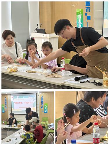 “寻竹成趣,千编万化”非遗体验活动精彩纷呈。破冰环节,孩子们一边聚精会神地听着阿水的故事,一边给手指做了短暂的热身锻炼,在欢笑声中与周围的小伙伴们打成一片。进入手工编制竹编灯环节时,孩子们个个胸有成竹,跟着老师的教导为灯球顺利搭好基础的框架。但随着一步步深入,每一根竹片的走向都越发错综复杂,惹得不少孩子高呼等一等。好在借助结对关爱的邻家妈妈与老师的帮助,小朋友们最终克服了困难,完成了非遗竹编灯的制作,体验了一把竹编匠人的艰辛不易与匠心沉淀。