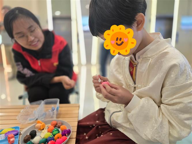 活动现场,三年级的孤独症小朋友小玉成为了全场瞩目的焦点。她用一双灵活的小手,创作出了色彩逼真的“水果盛宴”泥塑作品。栩栩如生的草莓、香蕉、西瓜,仿佛散发着诱人的香气,吸引了众多小朋友驻足观赏。当路过的孩子们好奇地围过来,也想一起参与创作时,小玉大方地欣然应允。这场跨“星”互动,让艺术成为打破隔阂的桥梁,也让我们看到了孤独症孩子独特的艺术天赋和内心的善良。