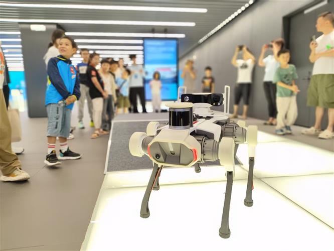 “机器狗会不会吃骨头呀?”在晨星机器人展区,一个女孩指着踱步的机械狗轻声发问。导览员笑着启动机器狗的探测功能:“它不吃骨头,但能协助消防员在火场找到需要救助的人。”话音刚落,旁边的男孩就追着六足机器人跑起来:“你跑得有火车快吗?”机器人突然原地打了个滚,引得孩子们一阵欢呼。