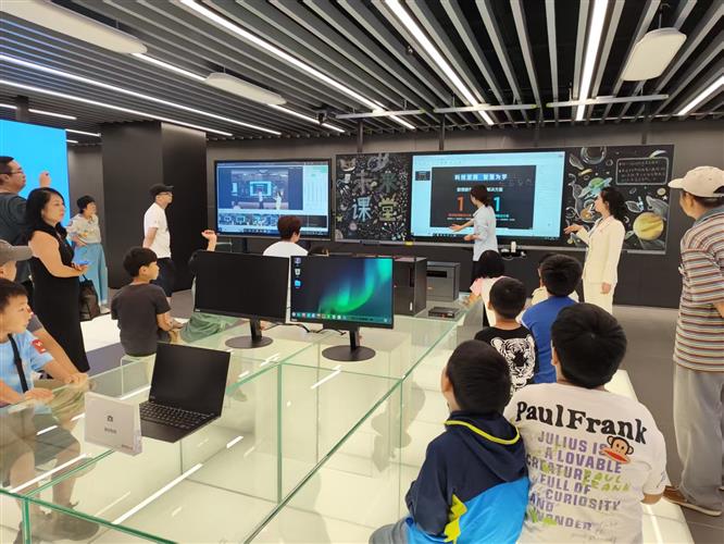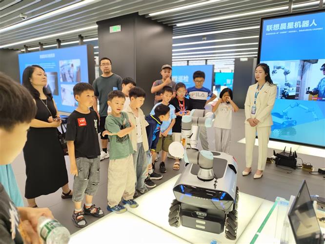 2025年7月下旬,在上海市慈善基金会的大力支持下,“一米书桌”项目的社工老师带领12组受助家庭的孩子及父母,走进了位于浦东新区张江高科技园区的“联想未来中心”。这里以“擎天”引擎驱动的“新IT架构”为核心,全方位展现了联想在智能制造、智慧教育、智慧农业、智慧办公等诸多领域的应用成果。全景屏幕上,蓝色数据浪潮翻涌而过。这场“探秘AI奇境”的体验活动,让孩子们深刻领略到了尖端科技的独特魅力,更在他们心底点燃了好奇与求知的火焰。