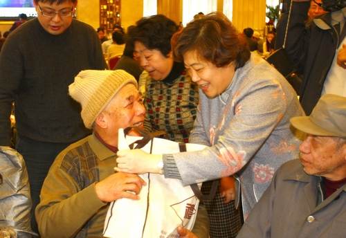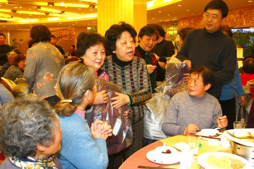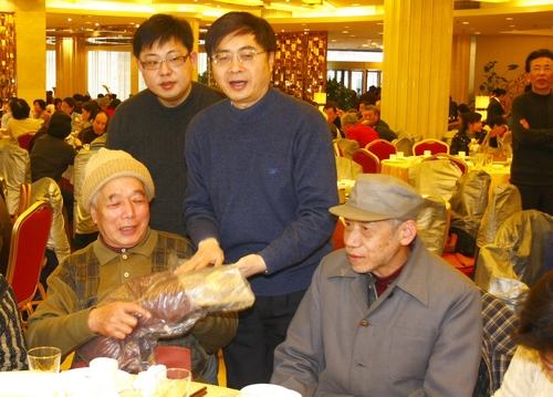 自2007年以来,分会领导与孤寡老人同吃年夜饭的传统已延续了4年。席间,到会领导与老人亲切交谈,真诚问候,祝老人们新春快乐,健康长寿,并为每位老人送上由顾卞裘莉女士捐赠的羽绒背心、糕点、食品。