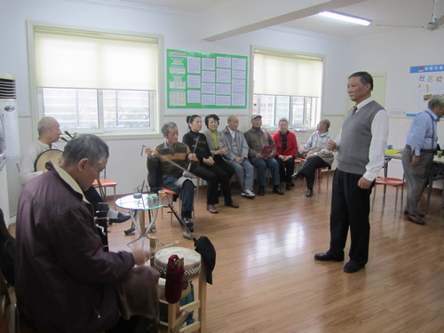 上海慈善网讯 在位于黄浦区延安中路高架531号的瑞金二路街道延安社区公益站里,有一个由老年京剧爱好者自发组成的京剧票友特色沙龙。每周二、三或四、五,当你走进公益站循声而上,便能发现三楼温馨整洁的小活动室里,上海市宁波同乡联谊会京剧沙龙的老年京剧票友们正在进行热火朝天的切磋交流,锣鼓胡弦,唱念做打,煞有介事,专业度和投入度让人仿佛身处一个专业京剧团的日常排练场地。在这里,承载了悠远传统文化的京剧唱腔韵律久久回荡,别有情趣。据公益站服务员老师孙寅珠介绍,京剧排练有自身特殊性,因活动时伴奏等较大的声响很容易干扰到附近居民,使得很多社区的戏曲社团活动望而怯步。而由上海康乐家社区服务发展中心负责策划、延中居委积极配合运行的社区公益站之一——延中社区公益站却避免了这个缺陷。公益站设于景观道路延安中路高架旁,远离居民住宅密集区,独特的地理优势具有良好的隔音条件,使得公益站成为京剧沙龙成员满意、居民放心的专用活动场地。