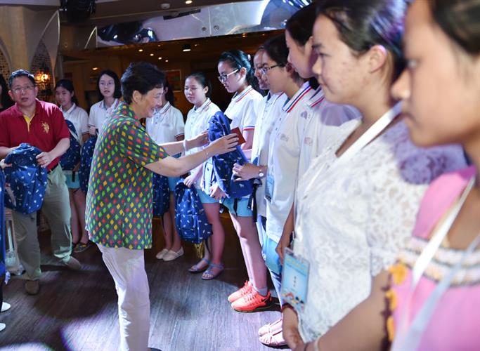 捐赠仪式上,吴幼英向耶里夏丽实业有限公司颁发爱心捐赠证书,并高度肯定了企业的善行义举;金闽珠向参加夏令营活动的学生赠送了学习用品。