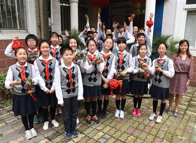 孩子们展示自己包的粽子