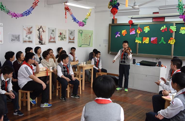 上海慈善网讯 5月25日上午,黄浦区第四届“大手拉小手、小手牵大手”活动在新晖中学礼堂温馨启幕。来自新晖中学和中山中学的40名学生与40名打浦桥社区的老人欢聚一堂,共迎端午,欢度佳节。现场,孩子们与老人们一一结对,一起包粽子、吃粽子,老少同乐,气氛温馨。