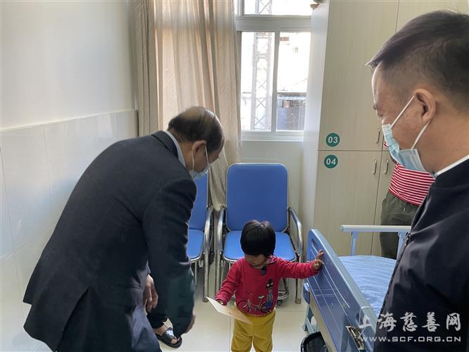 陆进兵会长一行还探望了住院检查等待手术的先心病儿童,并向家属送上慰问金,祝福小朋友手术成功。