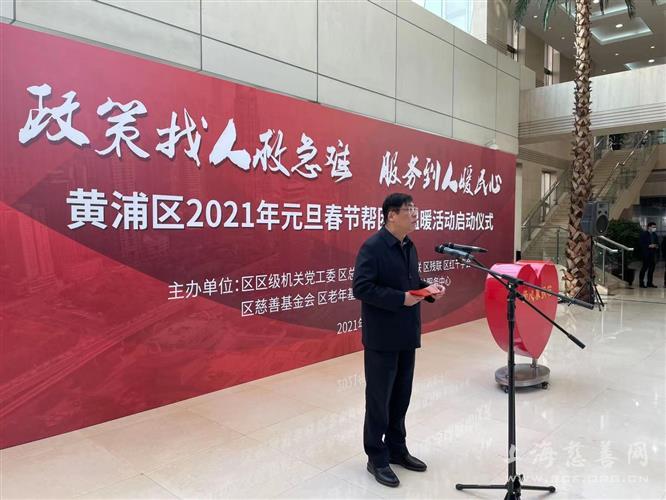 上海慈善网讯 1月4日上午,“政策找人救急难,服务到人暖民心”——黄浦区2021年元旦春节帮困送温暖活动启动仪式在黄浦区机关一号楼一楼举行。