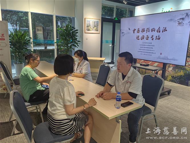 7月27日下午,由黄浦区上文中医药文化联盟、上海市慈善基金会黄浦区代表处主办,半淞园路街道办事处、上海市中医医院中医特色诊疗中心、上海世博城市最佳实践区商务有限公司承办的中医非药物疗法进园区专场活动顺利举办。