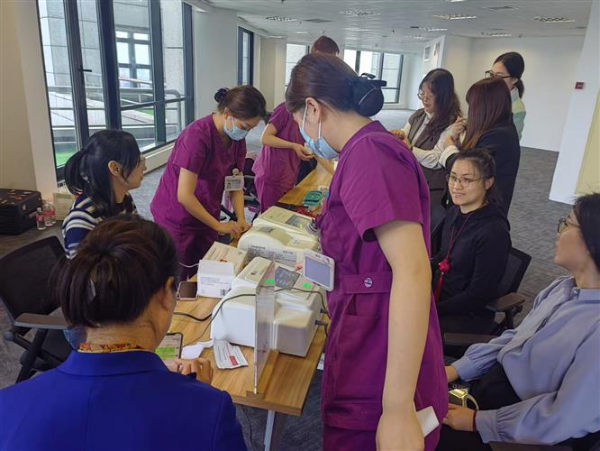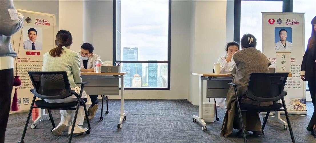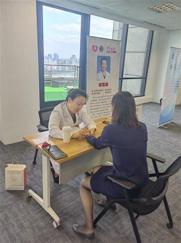 活动现场人头攒动,气氛热烈。上海市中医医院的专业医师们带着他们的电动砭石按摩仪、扶阳罐等中医特色诊疗设备,为前来咨询的白领们提供了专业、贴心的医疗服务。他们耐心细致地为每一位白领号脉、看舌象,并根据个人体质提出针对性的养生建议,让白领们在忙碌的工作之余也能关注到自身健康。