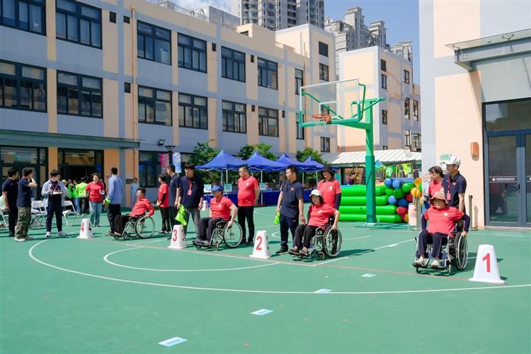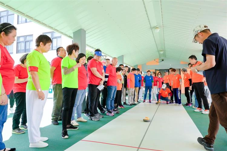 开幕式现场,随着阳光家园成员活力四射的《我相信》歌舞表演和经典诵读《三字经》的精彩呈现,活动正式拉开序幕。赛场上,团体与个人项目精彩纷呈。轮椅团体接力赛中,残障朋友与融合伙伴相互协作,坐在轮椅上完成20米往返接力,尽管行动受限,选手们仍默契十足,奋力冲向终点。在“齐心协力”项目里,6名队员手持充气棒围成圆圈,在道具不倒的情况下循环移动一圈,过程中加油声、欢笑声此起彼伏;蒙眼敲锣、一体同心等团体项目同样考验着队员间的协作与信任。个人项目中,飞盘掷准、旱地冰壶、乒乓弹弹乐等兼具竞技性与趣味性,参赛的运动员们全神贯注,以专注和技巧赢得阵阵喝彩。“第一次参加运动会,和伙伴们一起比赛特别开心。”来自阳光之家的运动员们激动地说。他与队友在轮椅接力赛中相互鼓励,虽然未能夺冠,却收获了珍贵的友谊。而在飞盘掷准项目中,残障运动员章传江、汪永生凭借精准投掷拿下高分,用实力证明了自己的无限可能。