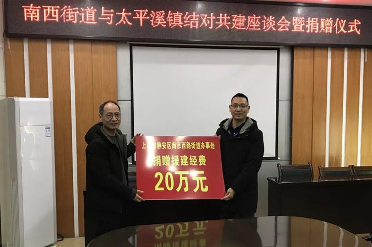 近日,南京西路街道带队辖区爱心企业家代表一行赴宜昌市夷陵区太平溪镇开展结对共建工作,并定向捐赠20万元用于智力帮扶、援建资金支持、党建教育培训、促进发展等方面,加强合作交流,促进两地的交流、交往和交融。