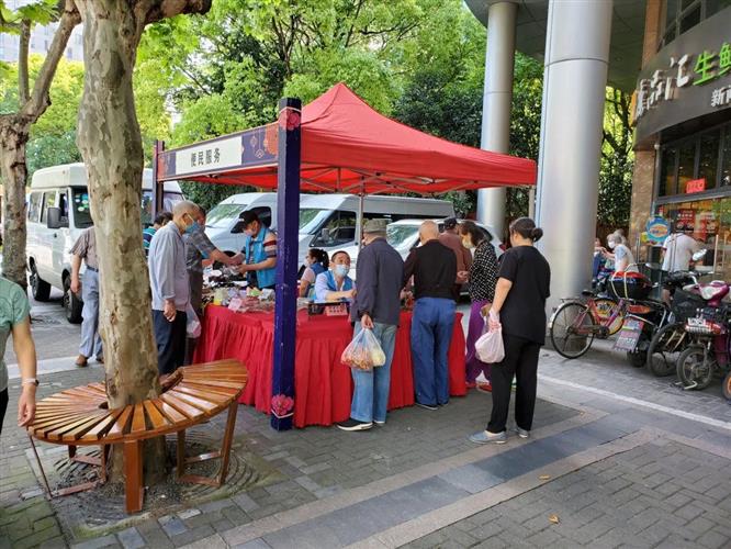 5月19日,修伞、理发、磨刀、西区老大房、泰康食品、九百集团……那一排排熟悉的摊位出现在新闸路945号沿街。阔别三月有余,石门二路街道公益集市正式复市啦!