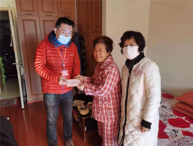 2021年2月2日上午,静安寺街道爱心单位平安养老保险股份有限公司上海分公司党委副书记龚巍一行来到社区,与居民区工作人员共同走访慰问困难家庭,为他们送上美好的新春祝福与慰问金。