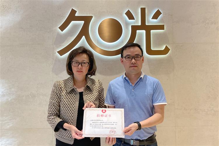 静安区代表处副秘书长吴兴国向久光百货店长陈淑懿颁发了捐赠证书,并对久光百货此次的爱心捐赠和长期以来参与支持静安慈善事业表示衷心的感谢。