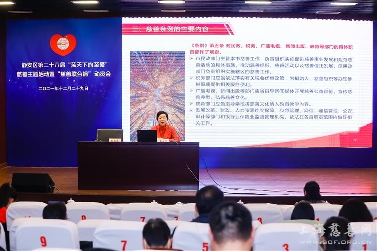 会后,上海市民政局慈善事业处处长张晓颖作了《上海市慈善条例》专题讲座。