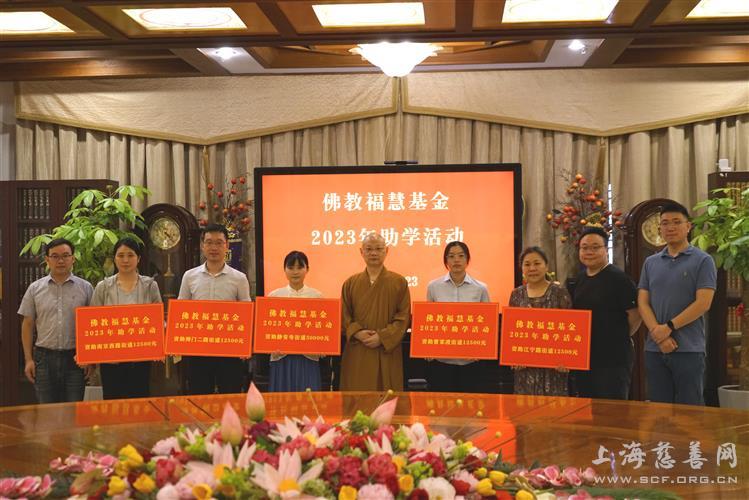 上海市慈善基金会静安区代表处“佛教福慧”专项基金由上海静安寺捐资设立。今年资助的110名学生中,共有大中专学生40名,初高生45名,小学生25名。自2003年成立以来,该基金坚持在9月开学之前,向周边社区生活困难家庭的在校学生捐赠助学善款,21年来累计资助超过2000名贫困家庭学生。