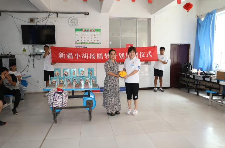 “新疆小胡杨圆梦计划”捐赠仪式在新疆巴楚县儿童福利院举行,向院方捐赠了旱地冰壶、拔河绳和上海美影厂24份孙悟空系列拼图等价值5000元的文化体育用品。