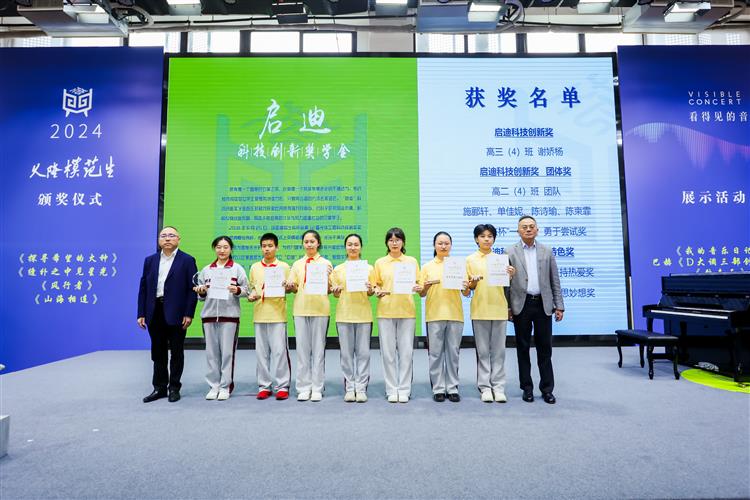 颁奖仪式涵盖了六大版块——闪光奖、自强奖、“启迪”科技创新奖、叶克平奖、沛华沛荣奖与久隆十佳“模范生”。与会领导、嘉宾为获奖的模范学生颁发证书、奖杯,表彰他们在品德、学业、创新实践等方面的突出表现。