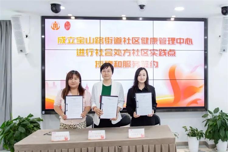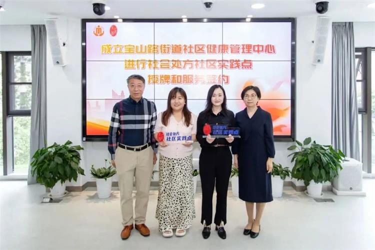 宝山路街道社区健康管理中心同时设立。静安区卫生健康工作党委书记陈敏、静安区社会组织联合会会长王希佳为宝山路街道社会处方社区实践点授牌。街道生活服务中心、上海眼镜博物馆、街道社区卫生服务中心签署服务合作协议,联合打造多维合一的资源服务包,落地老年肌少症和少儿眼病防治两个“社会处方”社区实践项目。
